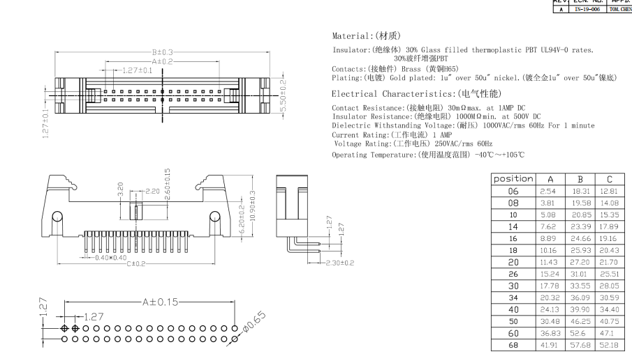牛角 2*10P 直插針180度 1.27mm數據手冊PDF下載