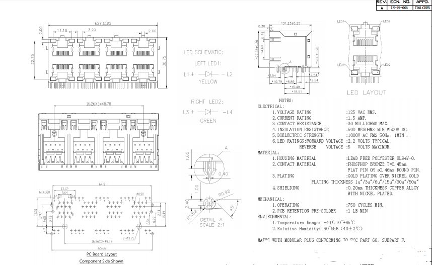 RJ45 Connector 2x4 Port 8P8C With Led Y&G Module Jack數(shù)據(jù)手冊(cè)PDF下載