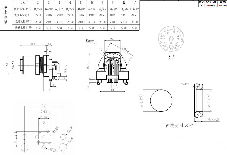 M12 8P A-CODING 母彎頭屏蔽型面板式PCB型連接器 前鎖數據手冊PDF下載